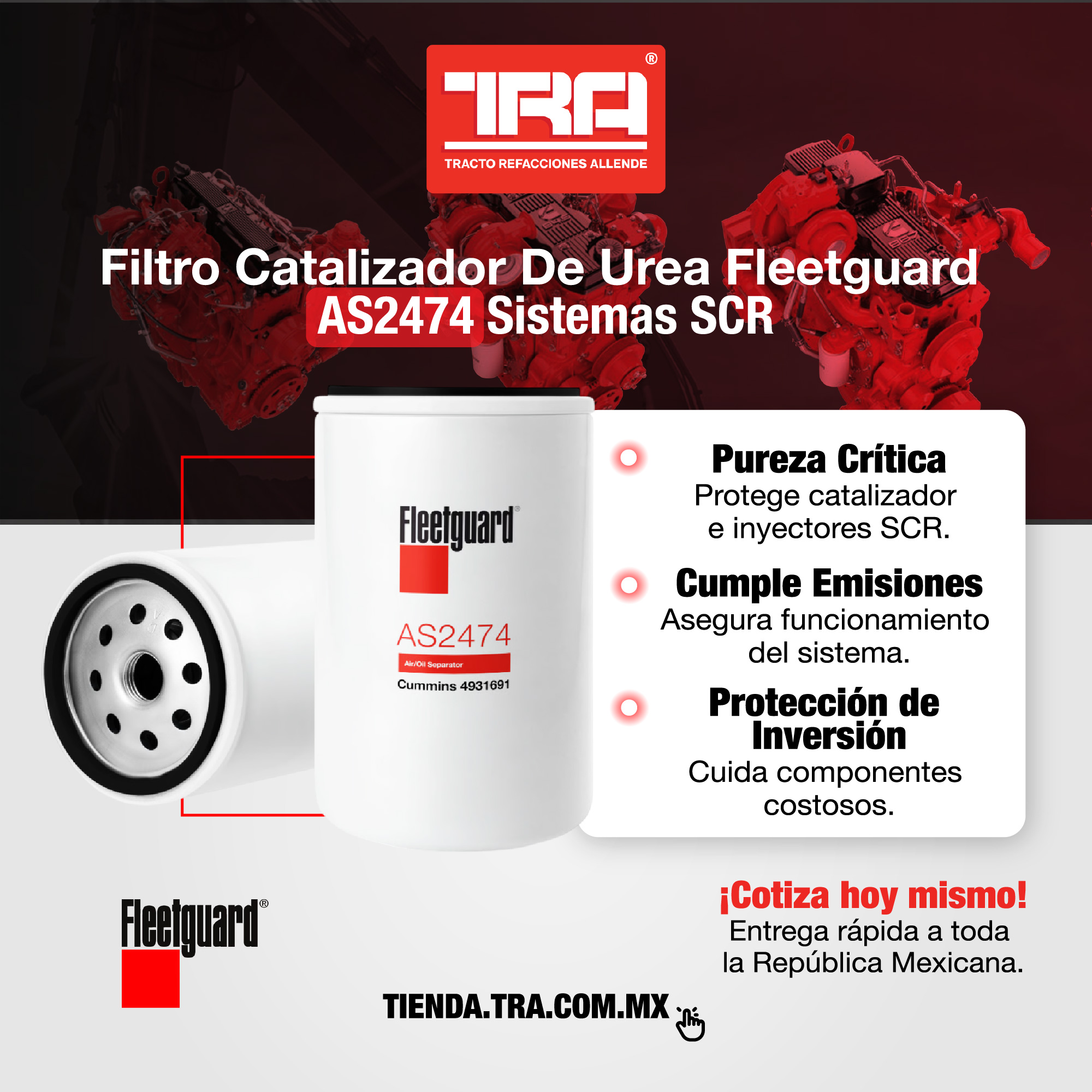 Comprar Filtro Catalizador De Urea Fleetguard AS2474 Sistemas SCR