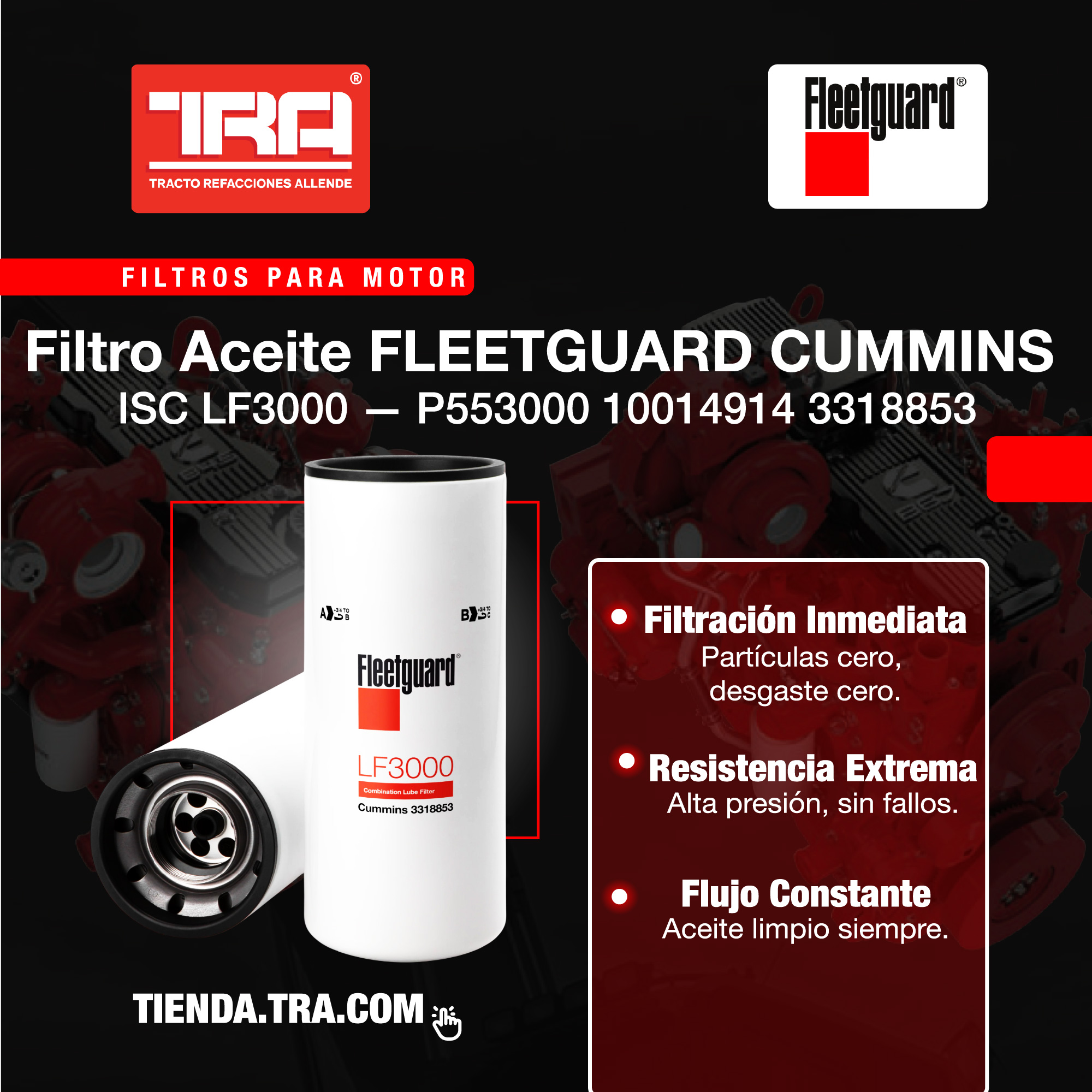 Comprar Filtro Aceite FLEETGUARD CUMMINS ISC LF3000 — P553000 10014914 3318853