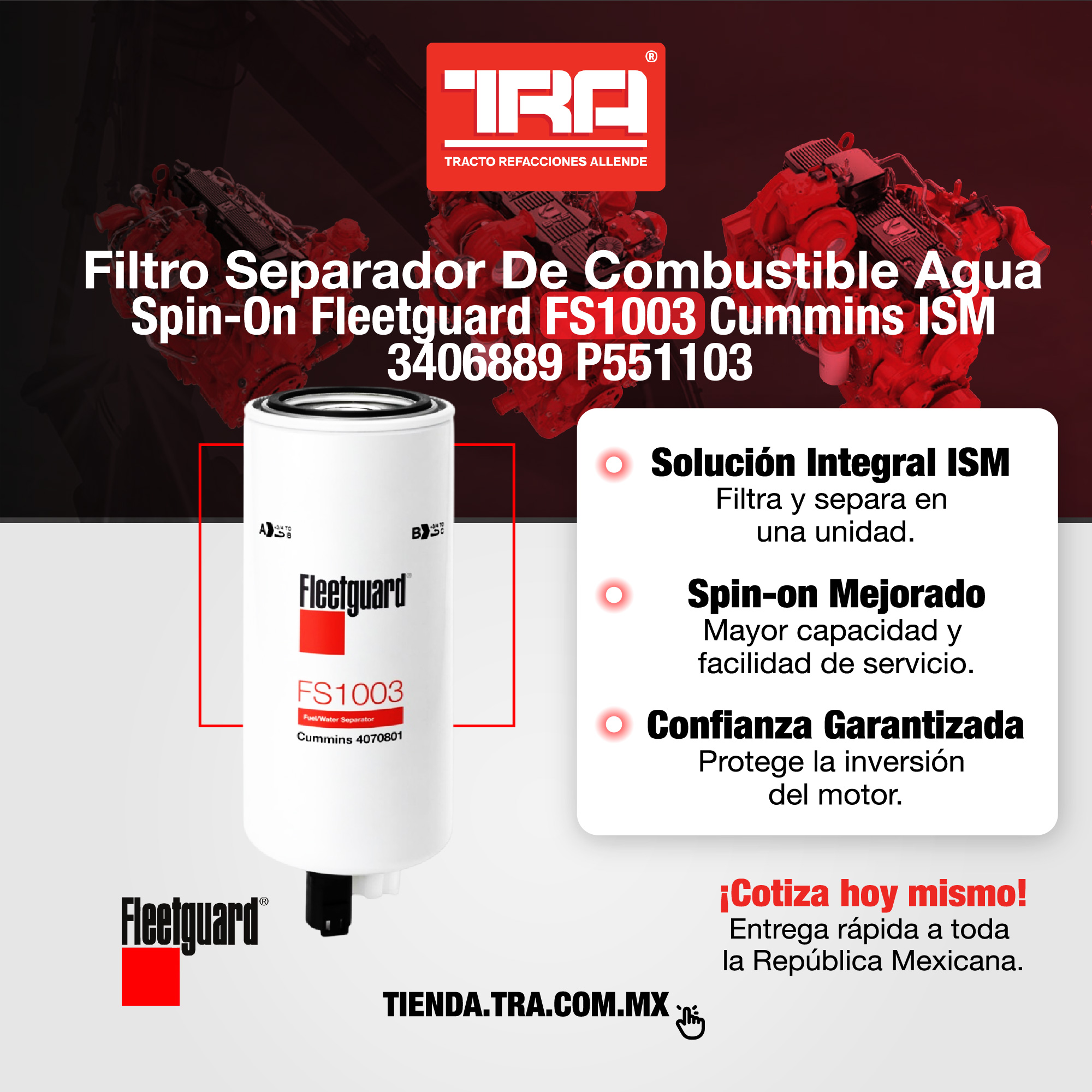 Filtro Separador De Combustible Agua Spin-On Fleetguard FS1003 Cummins ISM 3406889 P551103