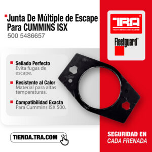 $876.70Juego de 4 juntas de múltiple de escape OEM Cummins para motores ISX y QSX de 15 litros, fabricadas en materiales de alta temperatura (grafito y metal reforzado). Sellan herméticamente la unión entre el múltiple de escape y la culata, evitando fugas de gases que reducen la potencia y dañan componentes circundantes.